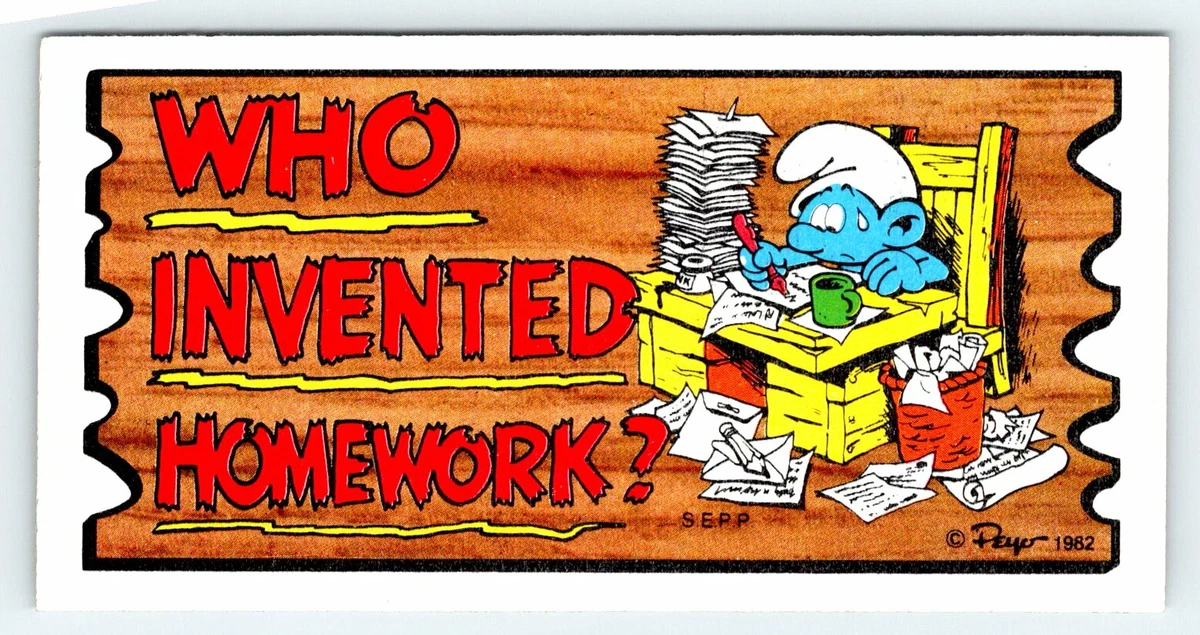 Source : www.homage.comSmurf Supercards WHO INVENTED HOMEWORK? Topps Trading Card Smurfs
