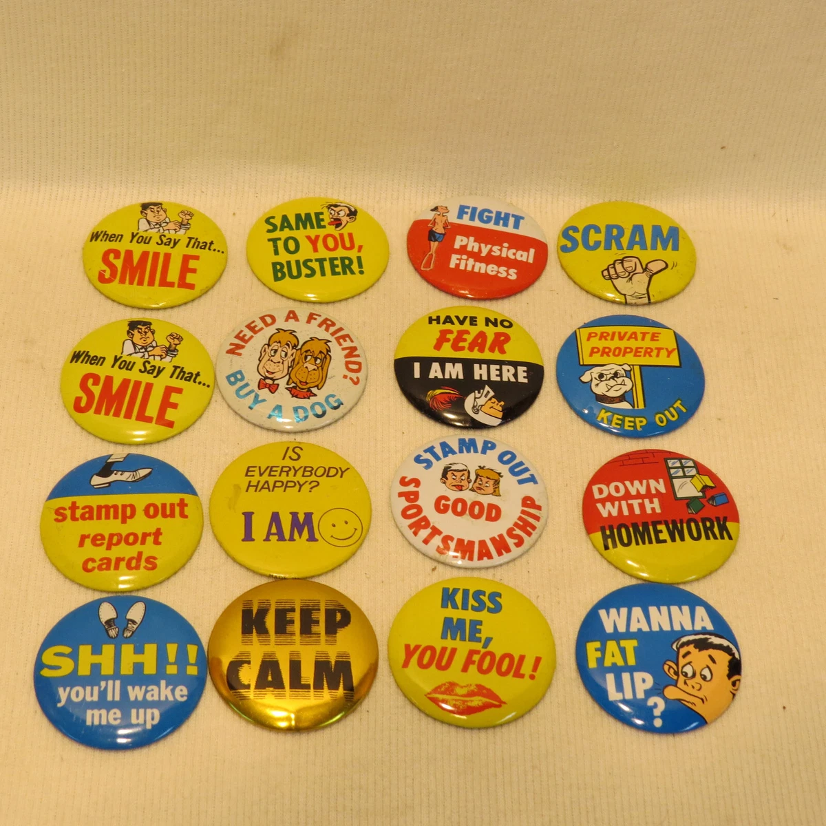 Source : issuu.comLot of 16 Vintage Topps Wise Guy Pinback Metal Buttons Humor